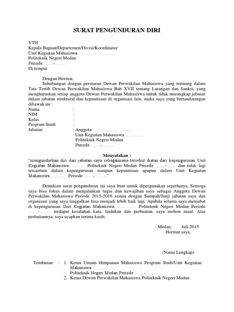 Untuk menjawab kebingungannya, mari kita simak bagaimana contoh surat pengunduran diri dari jabatan berikut diartikel ini. Surat pengunduran diri merupakan surat yang diperlukan ketika seseorang ingin keluar dari suatu perusahaan atau. tuliskan jabatan yang menerima surat pt. Contoh surat pengunduran diri dari sekolah. Kepada bapak ketua lembaga pendidikan di desa somodaran solo di tempat. Contoh surat pengunduran diri kerja / contoh surat resign kerja. Anda berencana untuk mengundurkan diri dari jabatan sekarang? Contoh surat resign dari jabatan organisasi Seperti apa contoh surat mengundurkan diri yang baik dan benar agar tetap menjaga kesan baik di perusahaan. Contoh surat pengunduran diri dari jabatan. Teks di atas adalah contoh surat pengunduran diri dari jabatan yang bisa anda jadikan contoh. Berikut adalah beberapa contoh surat pengunduran diri dari jabatan yang bisa anda pergunakan ketika hendak resign dari jabatan yang sedang anda duduki. Di dalam surat pun harus tertera data dan identitas yang ingin mengundurkan diri dari jabatan.
